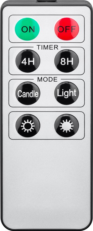 - per 8-Tasten-Infrarot-Fernbedienung lässt sich das Kerzenlicht bequem steuern (EIN/ AUS, Timer, Leuchtmodi, 5-Stufen-Dimmer), Reichweite ca. 5 m