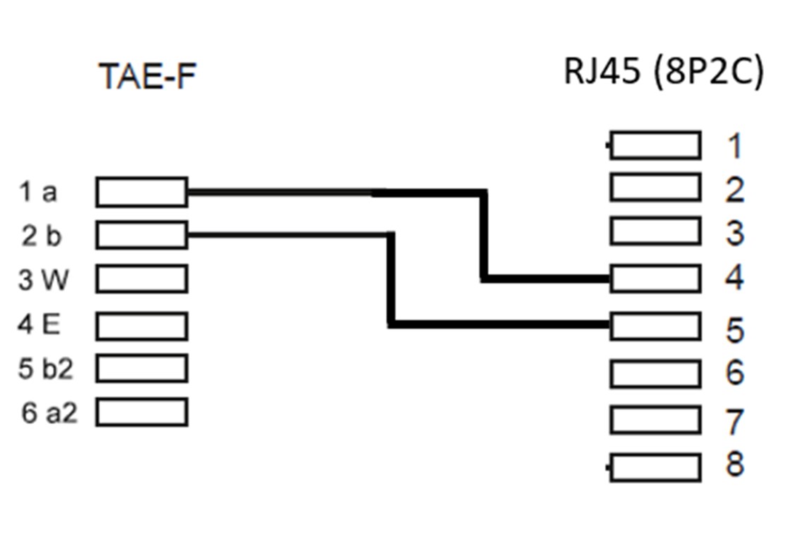 - TAE PIN 1(a) auf RJ45 PIN 4 / TAE PIN 2(b) -> RJ45 PIN 5