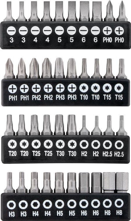 8x Kreuzschlitz (Phillips): PH0, PH0, PH1, PH1, PH2, PH2, PH3, PH3