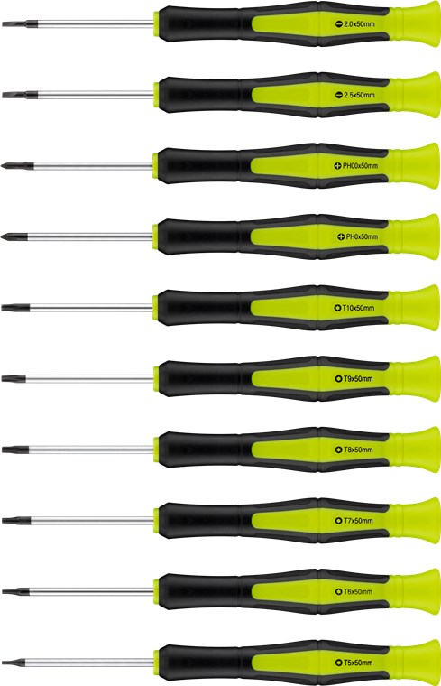 6x Präzisionstorxschrauber: T5, T6, T7, T8, T9, T10x50 mm