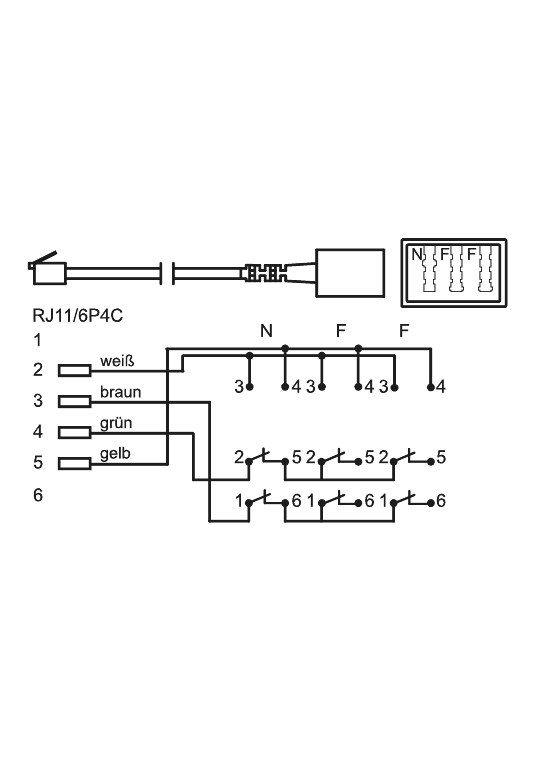 3x TAE N/F/F- Buchse > RJ11/RJ14-Stecker (6P4C)