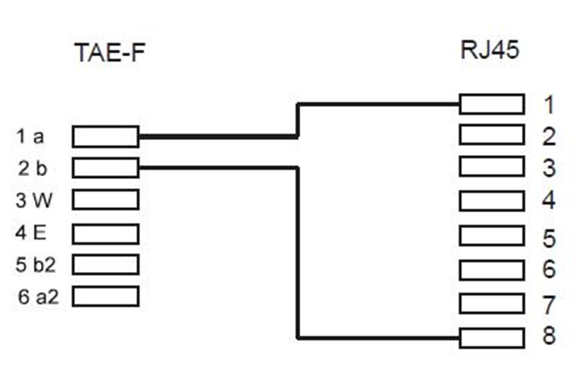 - TAE PIN 1(a) auf RJ45 PIN 1 / TAE PIN 2(b) -> RJ45 PIN 8