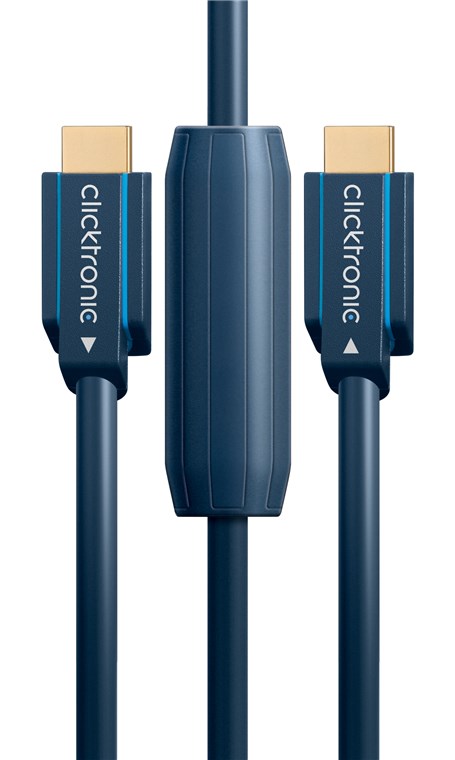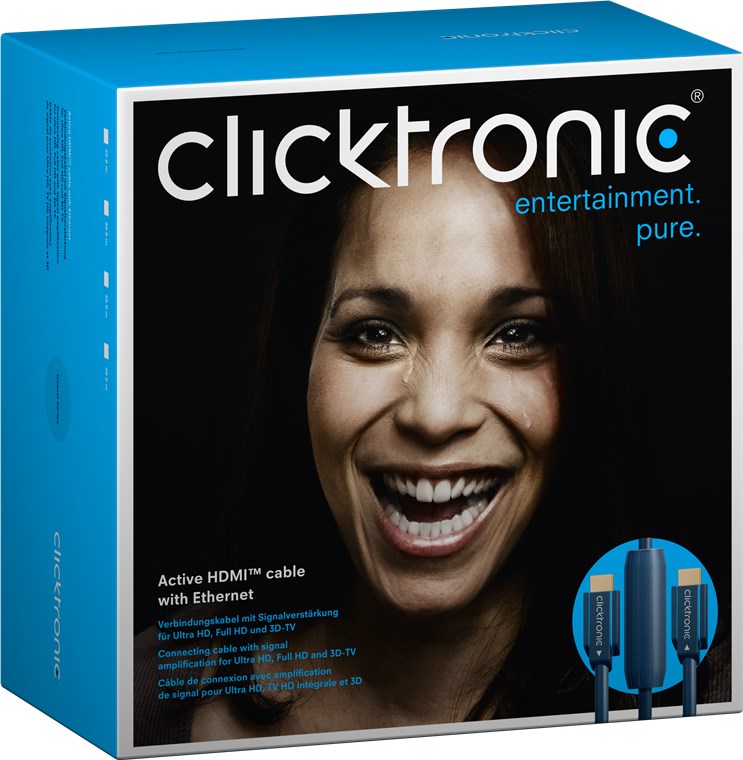 Zur Übertragung von Full HD-Auflösungen auf Distanzen über 20,0 m ist bei HDMI™ Kabeln eine Extra-Portion Aktivität gefragt. Dieser Typ bringt den Verstärker für die unterwegs notwendige Signalauffrischung gleich mit. Um eine optimale Übertragung von Audio- und Videosignalen zu gewährleisten, funktioniert das Kabel nur in eine Richtung. Bitte beachten Sie beim Anschließen, dass der Anschuss, bei dem der Pfeil Richtung Kabel zeigt, mit dem Sender also zum Bespiel einem Laptop verbunden werden muss. Der Anschluss, bei dem der Pfeil in Richtung Stecker zeigt muss mit dem Empfänger, beispielsweise einem Monitor, verbunden werden. So erleben Sie Videos oder Präsentationen über große Entfernungen immer klar, hochauflösend und umwerfend - natürlich auch in 3D. Alles andere ist wie von Clicktronic gewohnt: Hochwertig, langlebig und präzise verarbeitet.