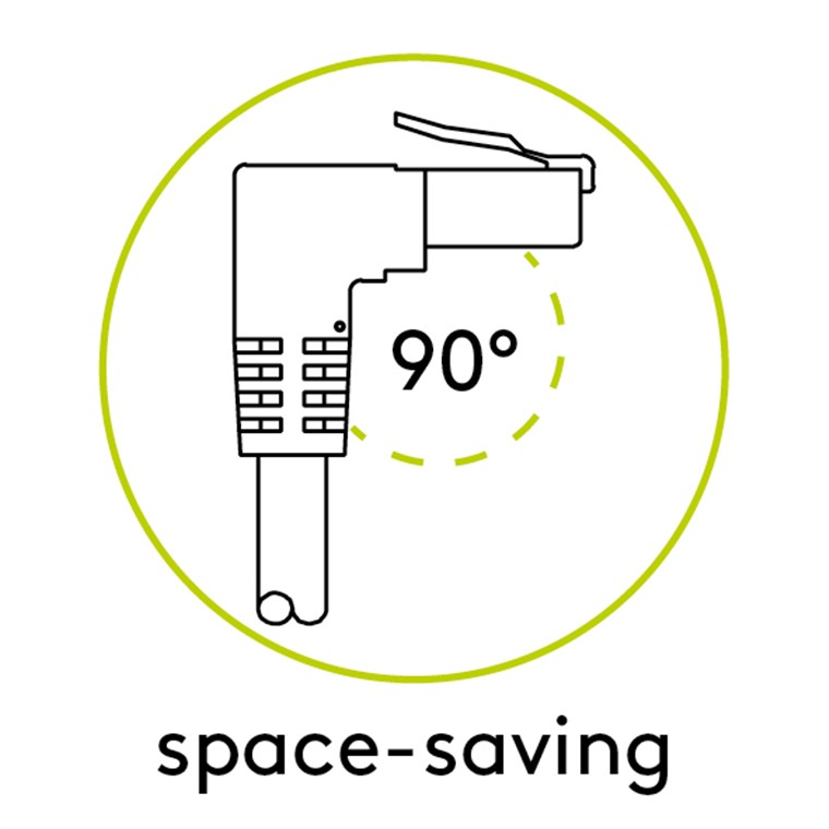 - RJ45-Stecker gerade an RJ45-Stecker gewinkelt, ideale Lösung bei minimalen Platzverhältnissen