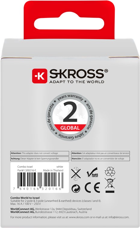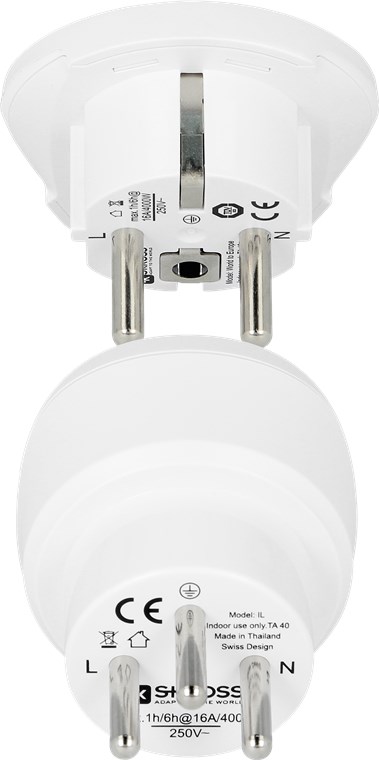 - zum Anschluss von Geräten aus über 150 Ländern in Israel und Europa (Schutzkontakt)