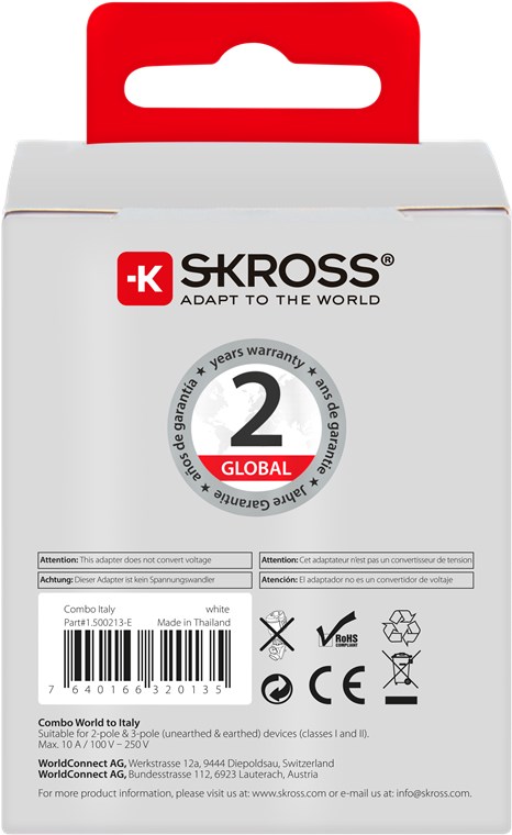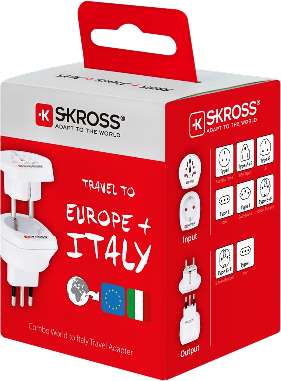 - zum Anschluss von Geräten aus über 150 Ländern in Italien und Europa (Schutzkontakt)