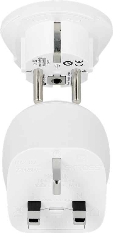 - zum Anschluss von Geräten aus über 150 Ländern in UK und Europa (Schutzkontakt)