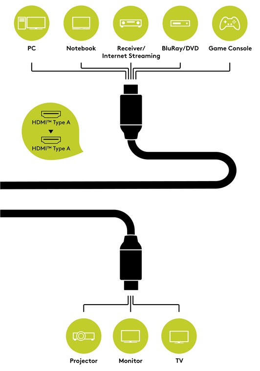 - HighSpeed HDMI™ für 3D und Ultra HD bis 4K@50/60 Hz (2160p)