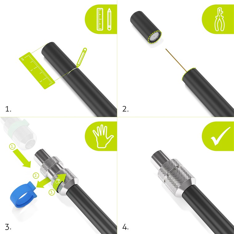 - innovatives, müheloses Konfektionieren von Satelliten- und Koaxialkabeln