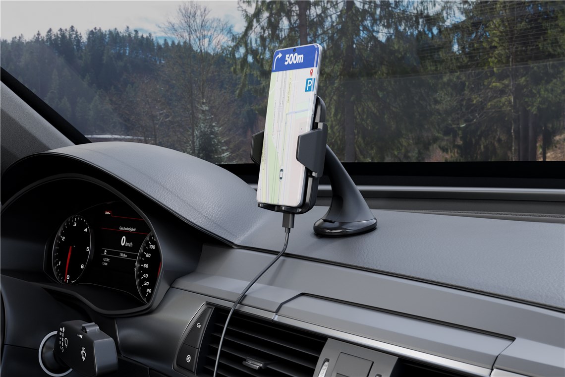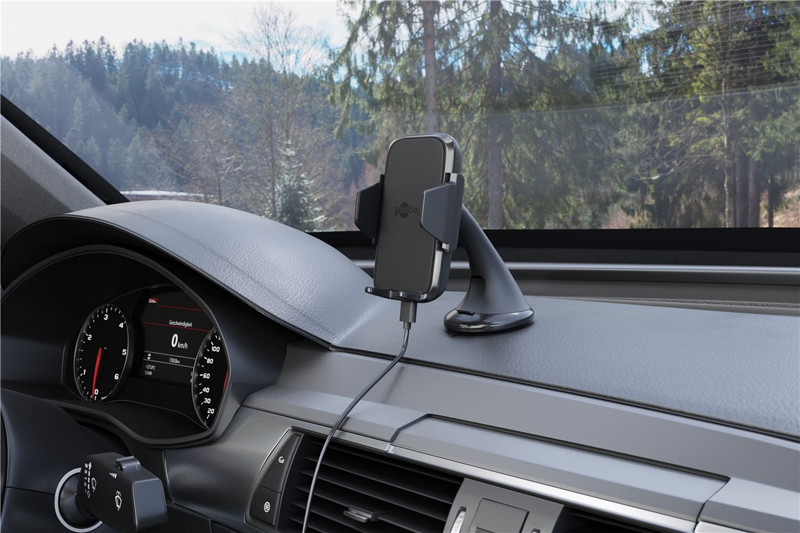 Saugnapf KfZ-Windschutzscheibenhalterung geeignet für Smartphones und Geräte mit Qi-Standard