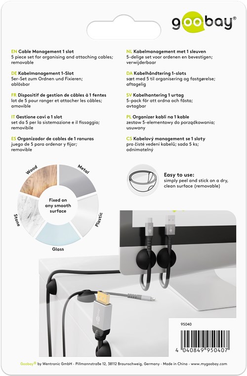5er-Set zum Ordnen und Fixieren; ablösbar