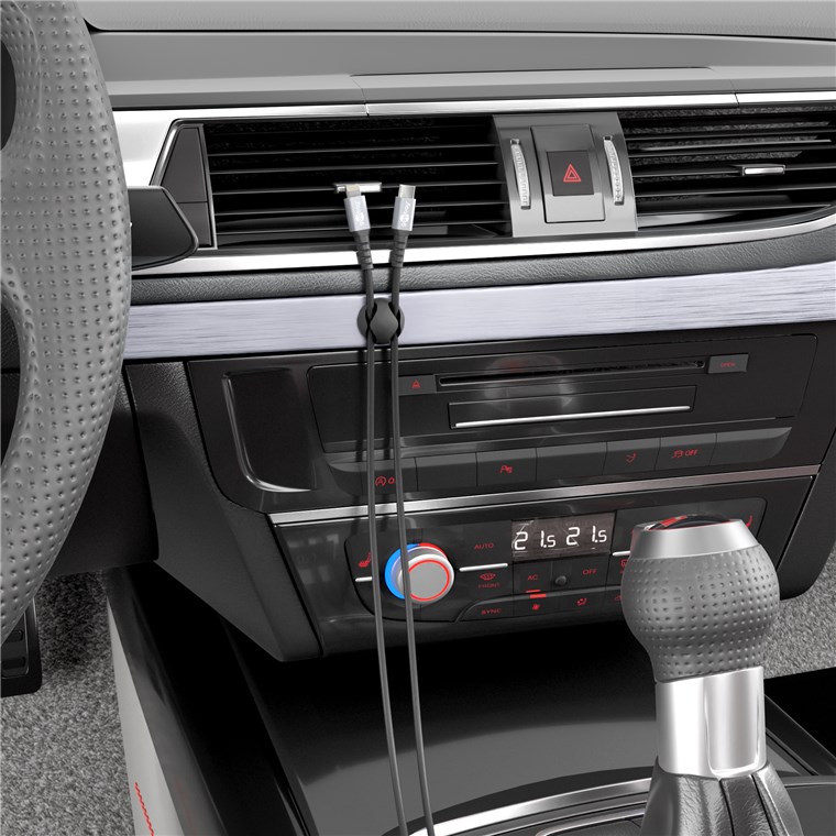 und verhindert das Wegrutschen von z.B. Ladekabeln oder anderen USB-Anschlüssen hinter und unter den