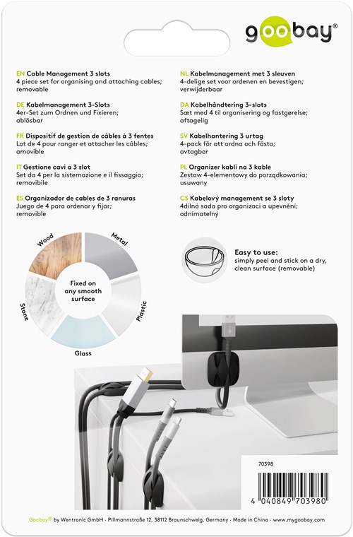 4er-Set zum Ordnen und Fixieren; ablösbar