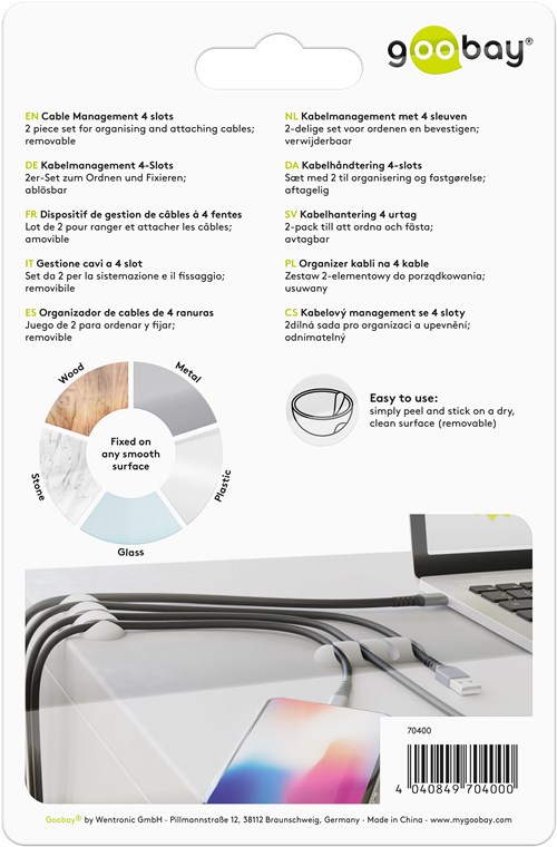 und verhindert das Wegrutschen von z.B. Ladekabeln oder anderen USB-Anschlüssen hinter und unter den