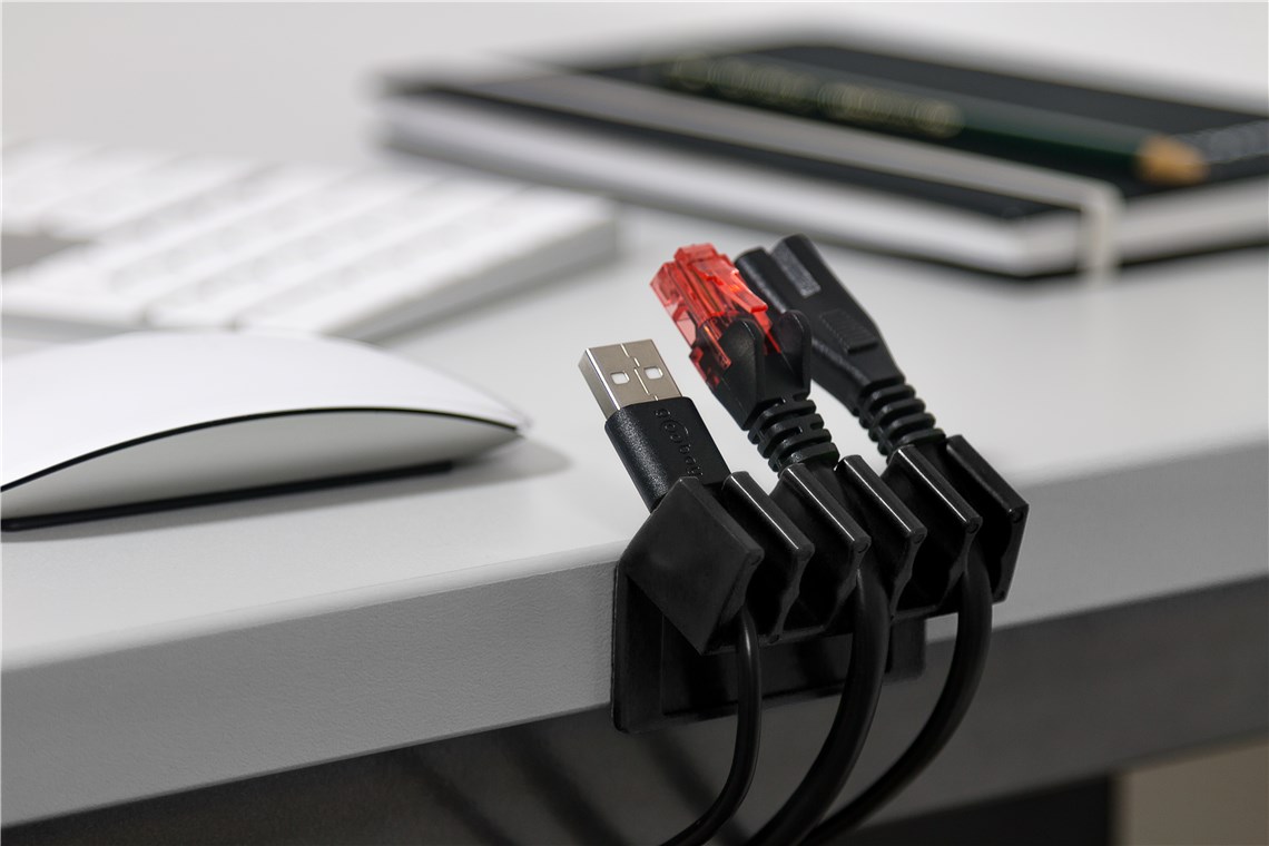 Die flexible Kabelführung fixiert Kabel in Griffweite