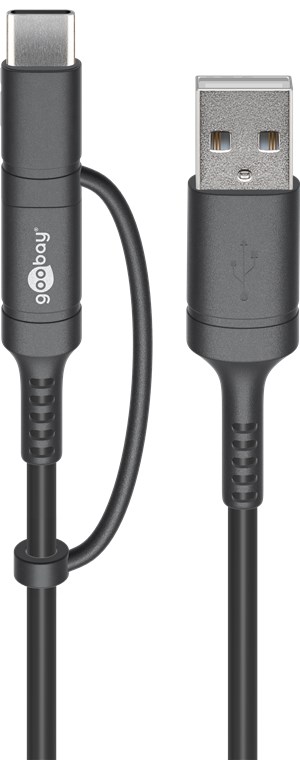 - 2in1 Ladekabel - Kombinationskabel zum schnellen Laden und Synchronisieren von USB-C™ fähigen Geräten und Smartphones mit Micro-USB-Anschluss.