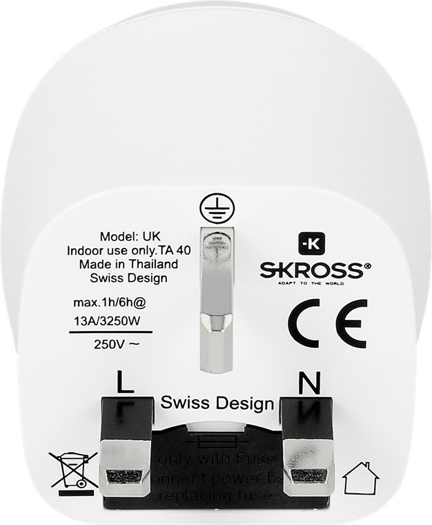 - zum Anschluss von Geräten aus Europa (2- und 3-pol.) in UK