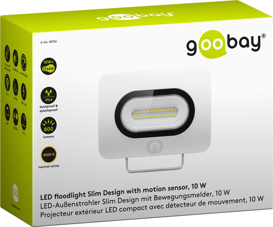 LED-Außenstrahler, 10 W, Slim Design, mit Bewegungsmelder