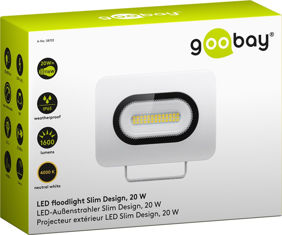LED-Außenstrahler, 20 W, Slim Design