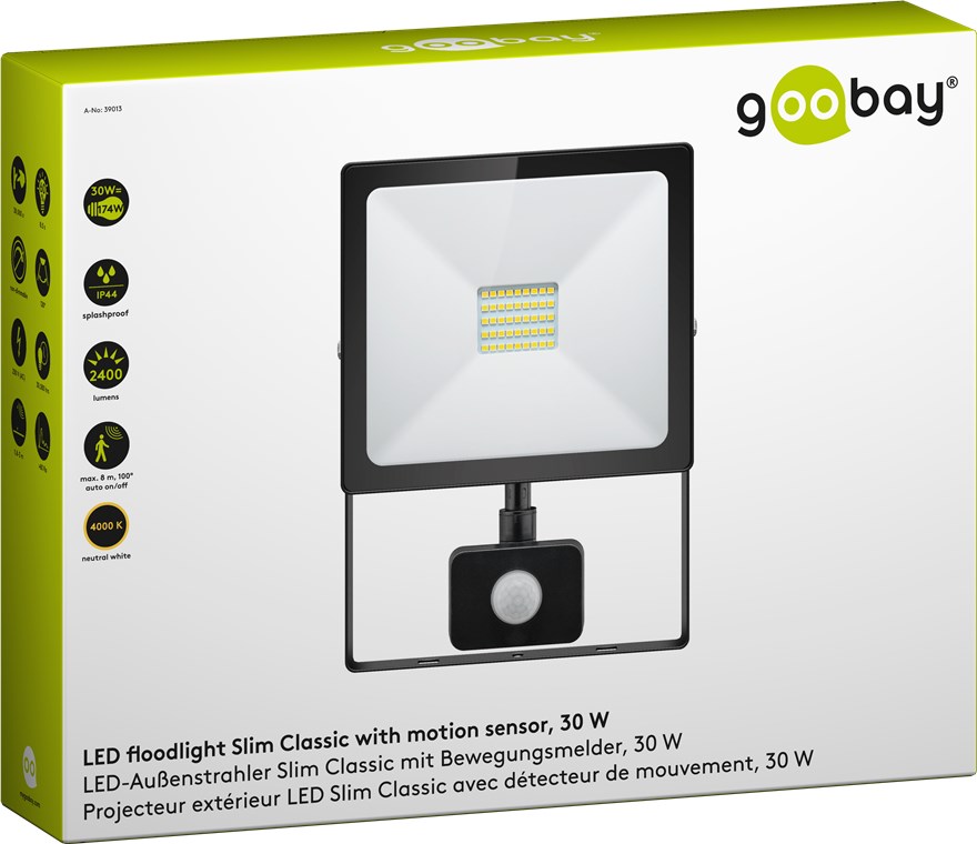 LED-Außenstrahler, 30 W, Slim Classic, mit Bewegungsmelder