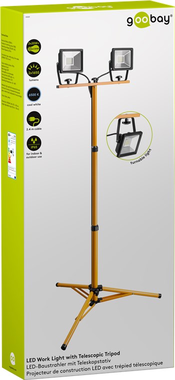 LED-Baustrahler mit Teleskopstativ, 2 x 20 W