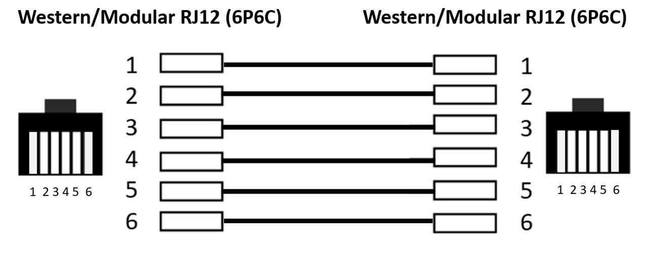 - genormte Western RJ12- Stecker mit 6-poliger Belegung (1:1)