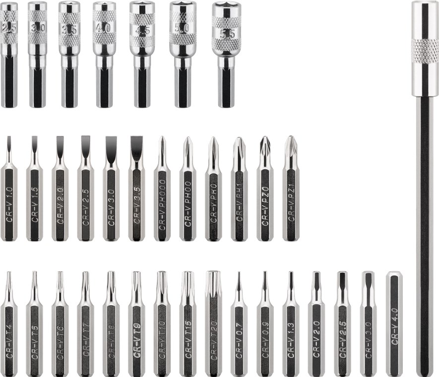 9 bitów torx: T4, T5, T6, T7, T8, T9, T10, T15, T20