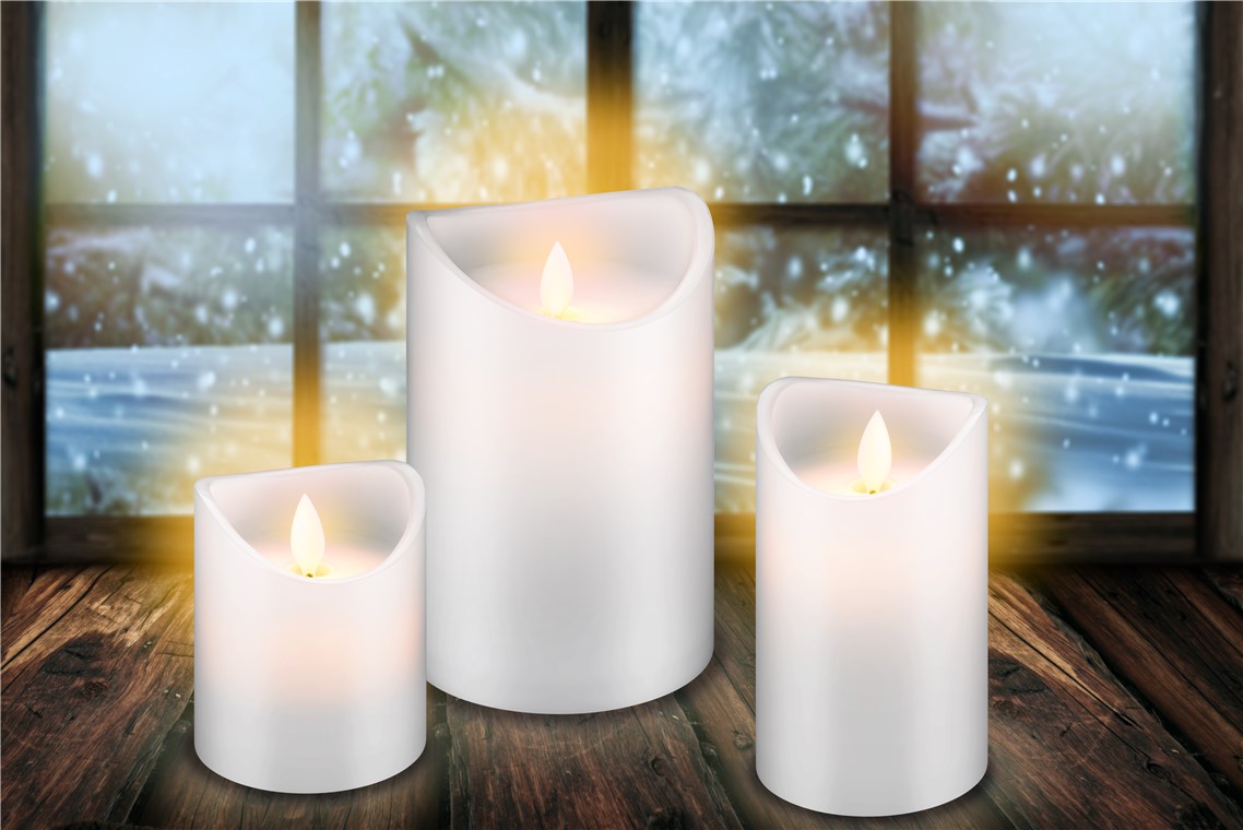 - niepowtarzalny efekt płomienia zapewnia migający knot i osłona z prawdziwego wosku – niemal nie do odróżnienia od prawdziwej świecy