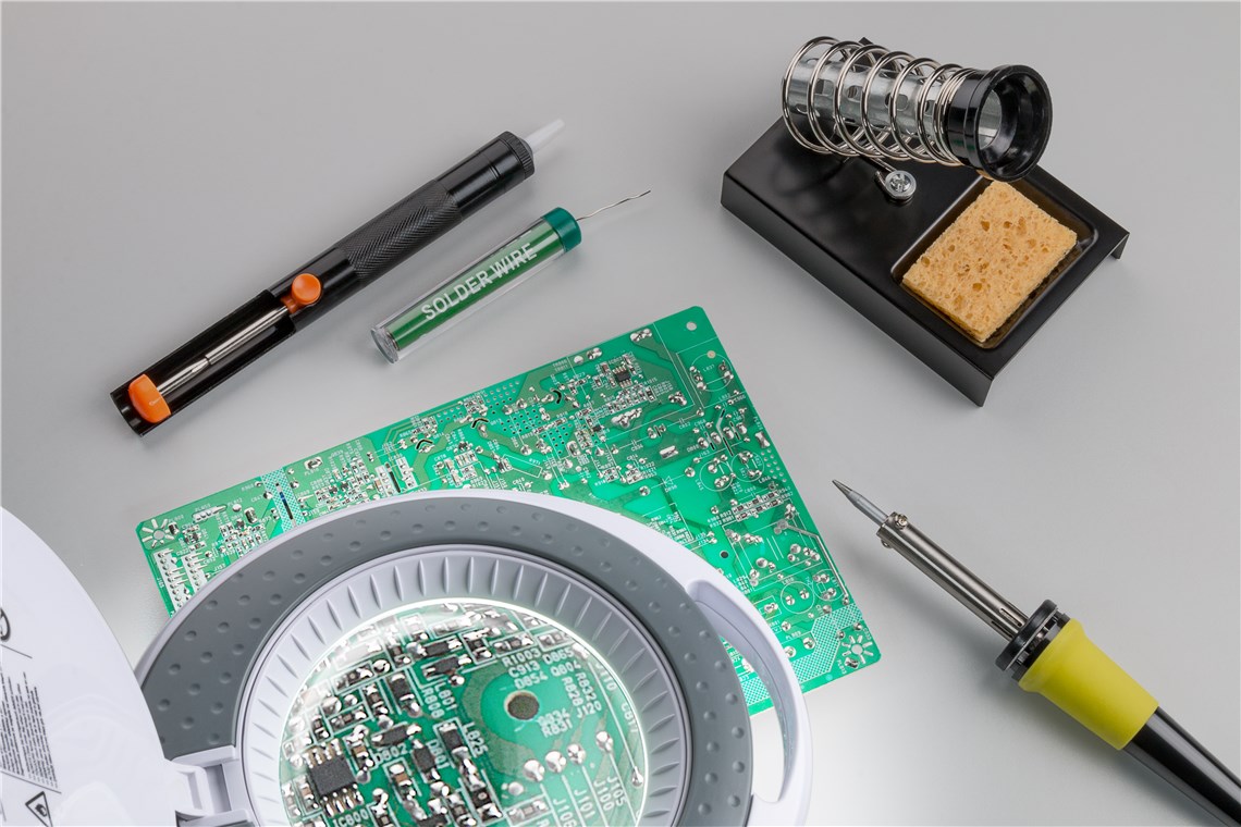 - pompę rozlutowującą z teflonowa końcówka ssąca do rozlutowywania i szpulę cyny lutowniczej