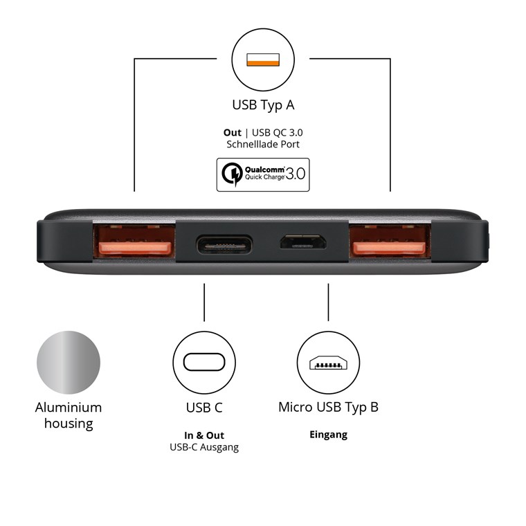 - Schnellladefunktion mit Qualcomm 3.0 Quick-Charge