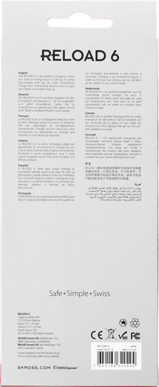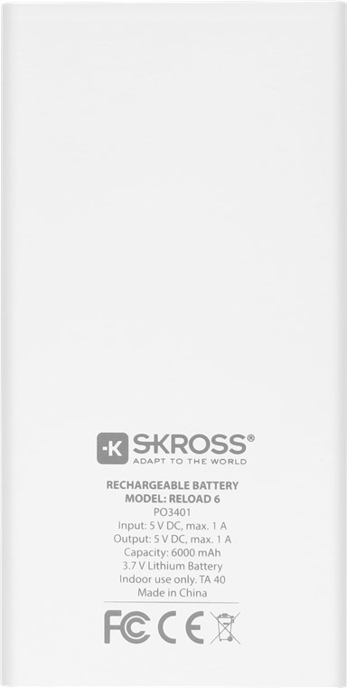 Die SKROSS® RELOAD 6 lädt Tablets einmal, Smartphones bis zu zweimal auf. Die Batterie ist vorgeladen und sofort einsatzbereit.