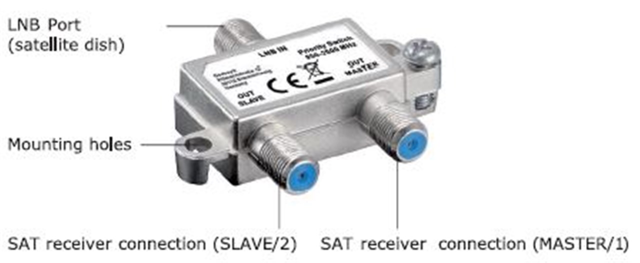 - Anschluss von 2 Satelliten-Receivern an einer Koaxialleitung (ein Master und ein Slave Anschluss)