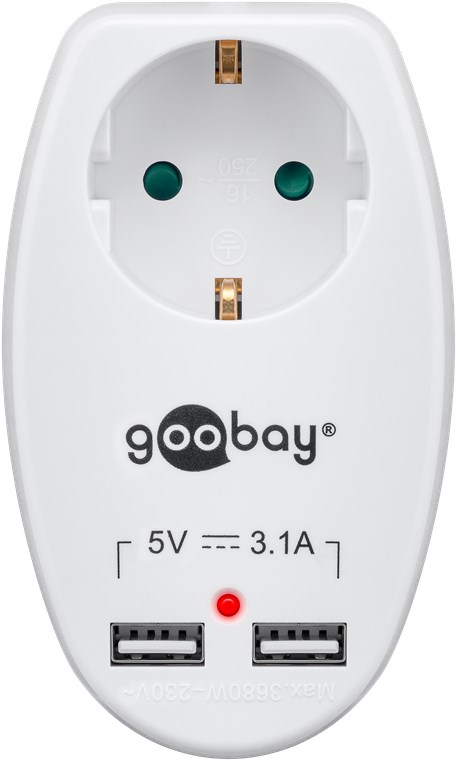Schutzkontaktsteckdose 16 A mit 2x USB-Port, 3,1 A
