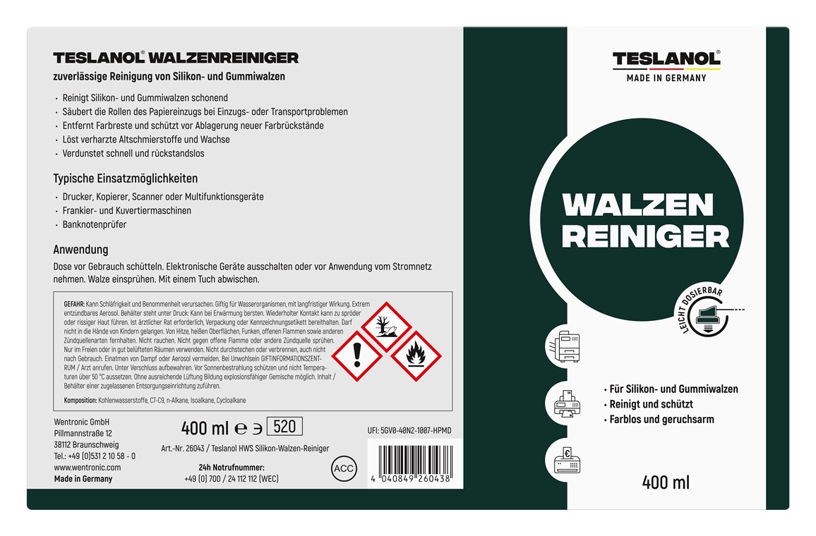 zuverlässige Reinigung von Silikon- und Gummiwalzen - 400 ml