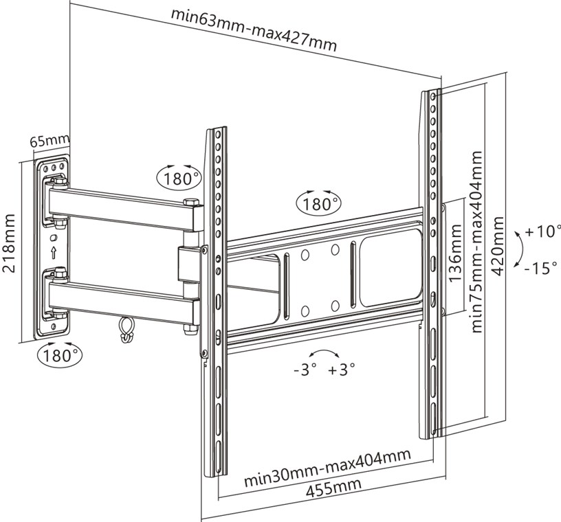 - Der Wandhalter hält den Fernseher in der Ausgangsposition mit nur 63mm elegant flach und platzsparend an der Wand und kann bis zu 427mm ausgefahren werden um den optimalen Blickwinkel zu erreichen.