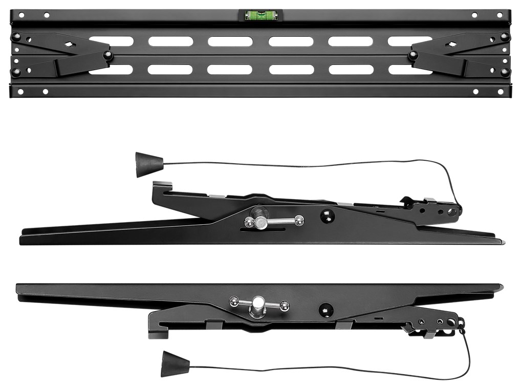 Der automatisch einrastende Federverschluss mit leicht zu lösender Schnur sorgt für eine einfache und sichere Befestigung Ihrer Flachbildschirme an der Wand. Durch die seitliche Verschiebung kann der Fernseher auf der Wandplatte nach links und rechts bewegt werden, so dass er genau dort steht, wo Sie ihn haben möchten. Eine neigbare TV-Wandhalterung ist die optimale Montagelösung, wenn Sie eine gewohnte Sitzposition haben und sich der Mittelpunkt bzw. der untere Teil des Flachbildschirms oberhalb der Augenhöhe befinden soll.
