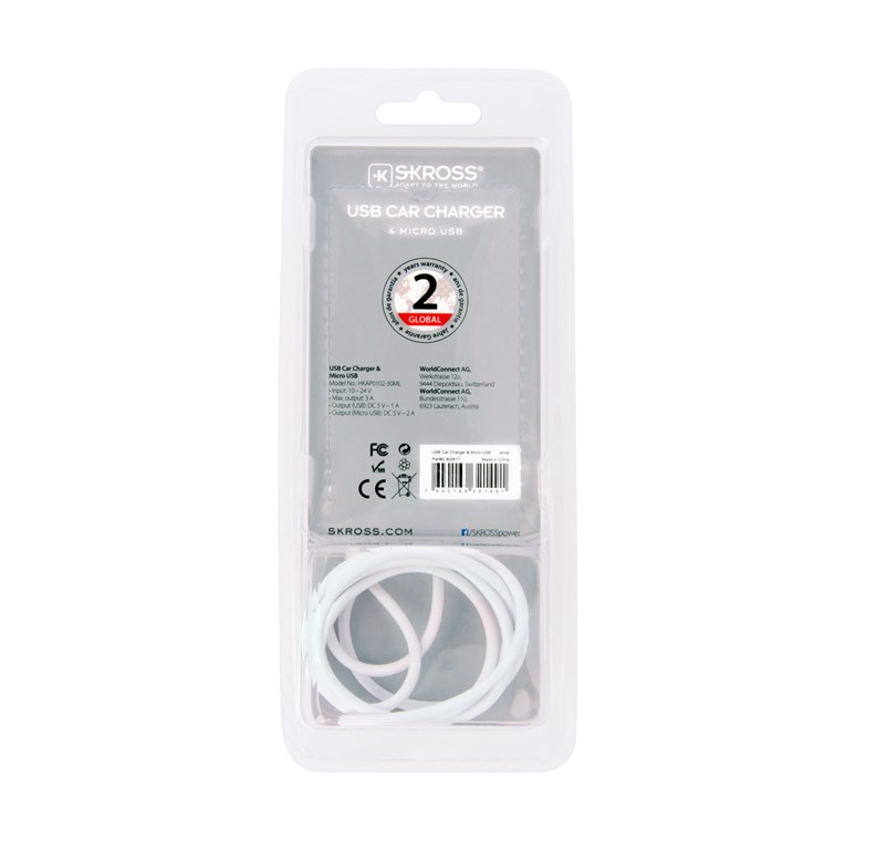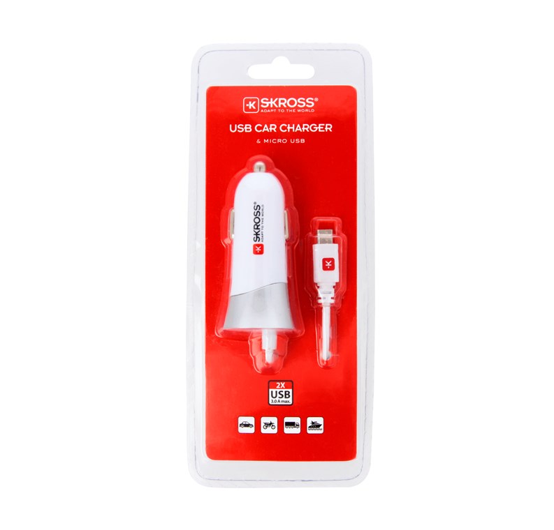 Dieses praktische USB-Ladegerät von SKROSS® bietet sowohl einen direkten Micro USB-Anschluss als auch einen zusätzlichen USB-Port für alle anderen USB-Geräte.