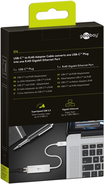Der USB-C™ / RJ45 Adapter ermöglicht die Verbindung Ihres Computers zu einem kabelgebundenen Netzwerk über einen USB-C™ Eingang. Gewährleistet einen schnellen Datenstransfer von bis zu 5 Gbit/s und unterstützt Netwerke mit 10/100/1000 Mbit/s.