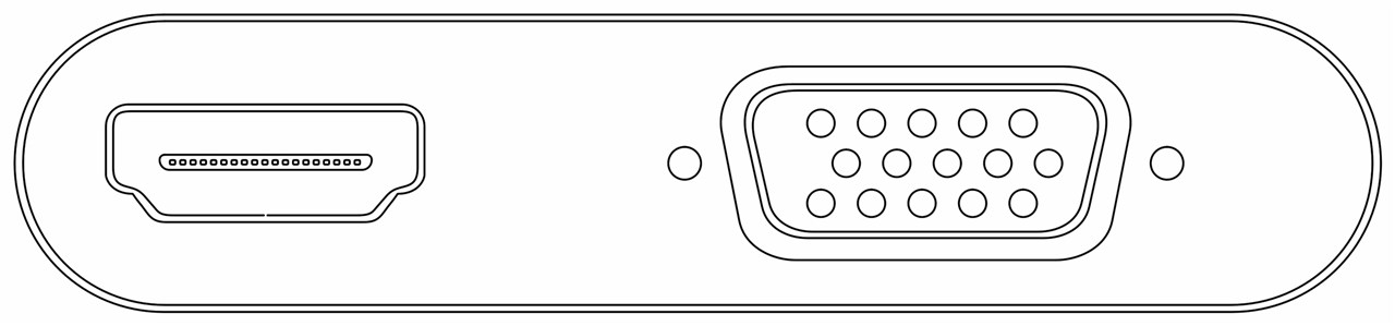 USB-C™ Multiport-Adapter leitet Signale von USB-C™ auf VGA- und HDMI™-Geräte weiter. Es werden Auflösungen von bis zu 4k*2k@60Hz (bei HDMI™) bzw. 1920px1200p@60Hz (bei VGA) unterstützt.