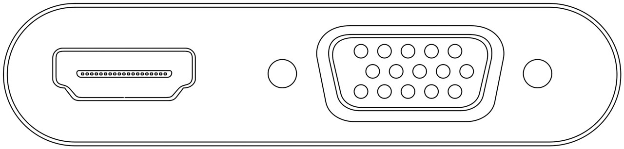 USB-C™ Multiport-Adapter leitet Signale von USB-C™ auf VGA- und HDMI™-Geräte weiter. Es werden Auflösungen von bis zu 4096px2160p@60Hz bei HDMI™ und 1080p/60Hz bei VGA unterstützt.