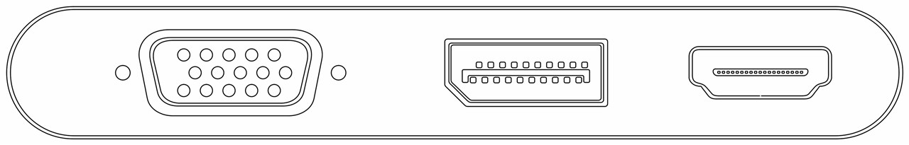 USB-C™ Multiport-Adapter leitet Signale von USB-C™ auf VGA, DisplayPort und HDMI™-Geräte weiter. Es werden Auflösungen von bis zu 4k*2k@30Hz bei HDMI™ und 4k*2k@60Hz DisplayPort) bzw. 1920px1200p@60Hz (bei VGA) unterstützt