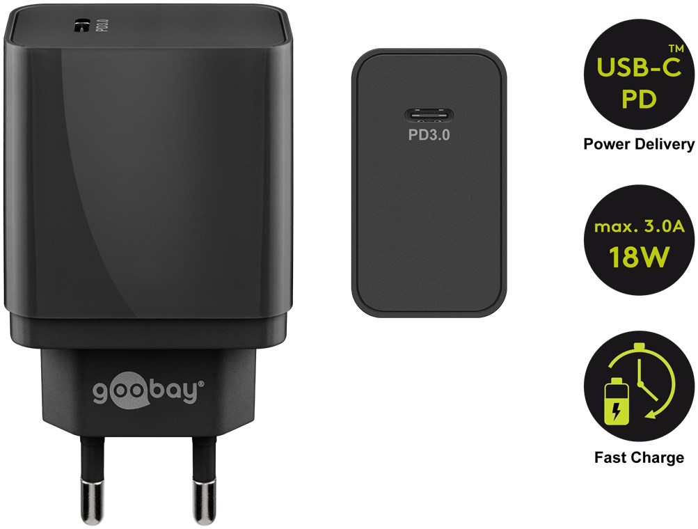 USB-C™ PD (Power Delivery) Schnellladegerät (18W) schwarz