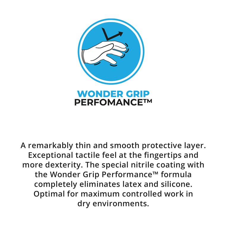 Der WG-1855HY U-Feel ist ein Handschuh mit einfacher Nitrilbeschichtung und einem 18-Gauge-Innenfutter aus Polyester und Elasthan. Durch Eintauchen in unser Wonder Grip® Performance™ entsteht eine hervorragende dünne und glatte Schutzschicht, die ein unvergleichliches Maß an Sensibilität und Fingerfertigkeit bietet. Dieser unglaublich dünne und weiche Handschuh verschafft dem Benutzer ein Gefühl einer zweiten Haut und sorgt für