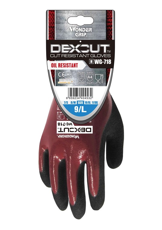 Der WG-718 Dexcut® ist ein Handschuh mit dreifacher Nitrilbeschichtung mit einem 13-Gauge-Innenfutter aus