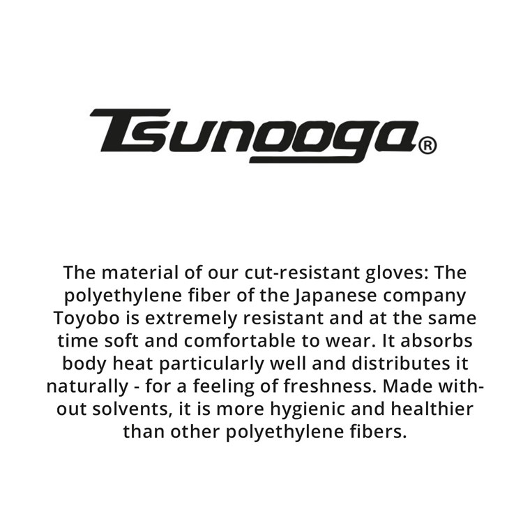 Elasthan, Tsunooga™ Hochleistungs-Polyethylen und Mineralfasern. Die Hochleistungs-Polyethylenfaser Tsunooga™ bietet eine hervorragende Schnittfestigkeit (ISO 13997 Klasse D) sowie eine sehr gute Flexibilität, wobei sie auf der Haut für ein frisches Gefühl sorgt. Der WG-718 ist 100 % undurchlässig für Industrieöle und Flüssigkeiten und somit der ideale Schutz bei intensiver Beanspruchung in sehr öligen oder sehr feuchten Umgebungen.