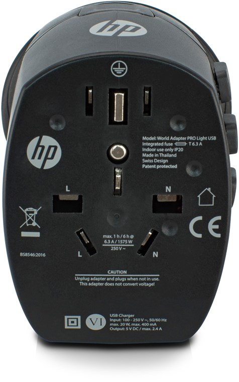 - Adaptereingang für: Schweiz, Italien, Brasilien, USA/Japan, UK, Australien/China, Europa (SchuKo und 2-Pol-Euro)